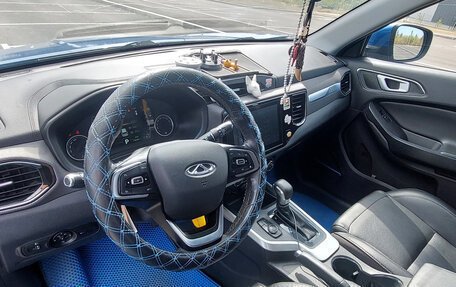 Машина Chery Tiggo 4 черного цвета, год выпуска 2021-й. Пробег 121 000 километров. В ПТС 3 владельца. Объем двигателя 1,5 литра. Мощность 147 лошадиных сил. Тип двигателя бензин. Чёрный кожаный салон в очень хорошем состоянии Коробк...